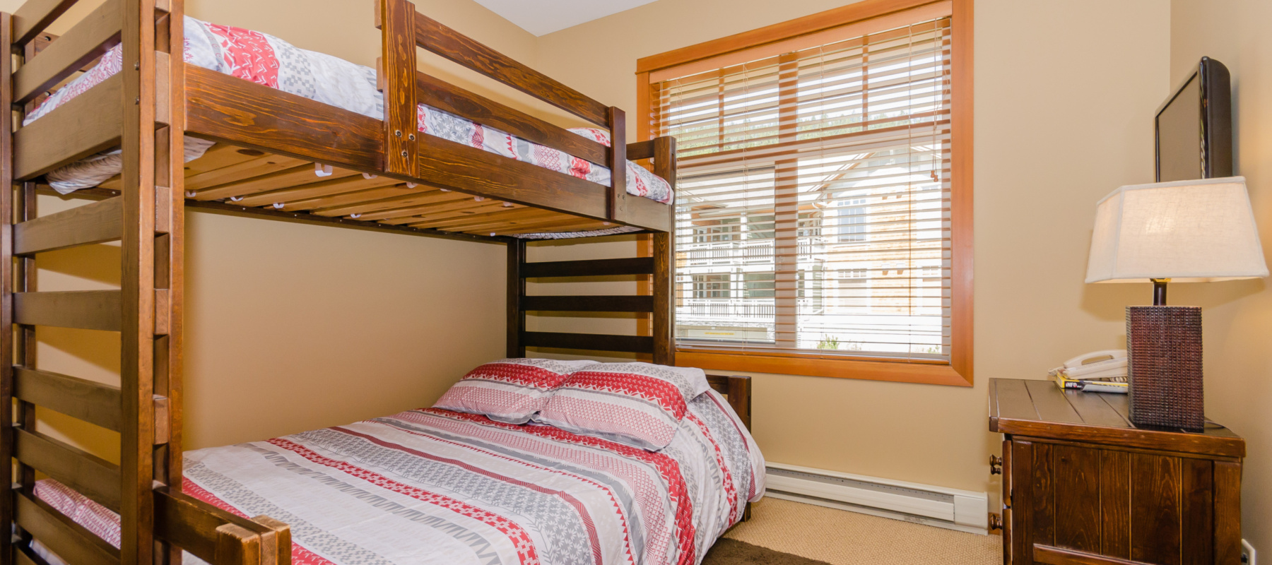 - 2 bedrooms – Sleeps 5-6 people (5 people in beds – Queen bed in the master and a queen/twin bunk in the second bedroom). The couch pulls out to a double bed and there is a foam single mattress under the bunk bed. We may accept up to 6 guests per stay, only with prior approval and with an extra guest surcharge when booking more than 5 people.